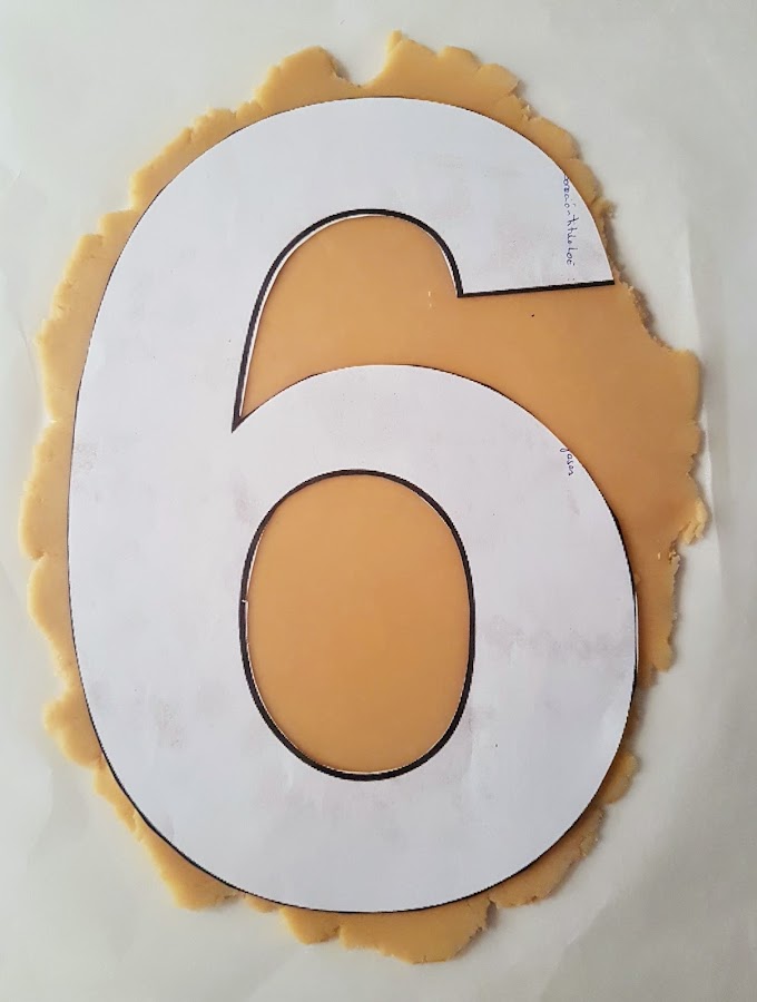 Además no hace falta ningún molde ni cortador especial. Sólo hay que sacar una plantilla en papel o cartón de los números o letras que queráis hacer (también he visto gente que hace otras formas como corazones)