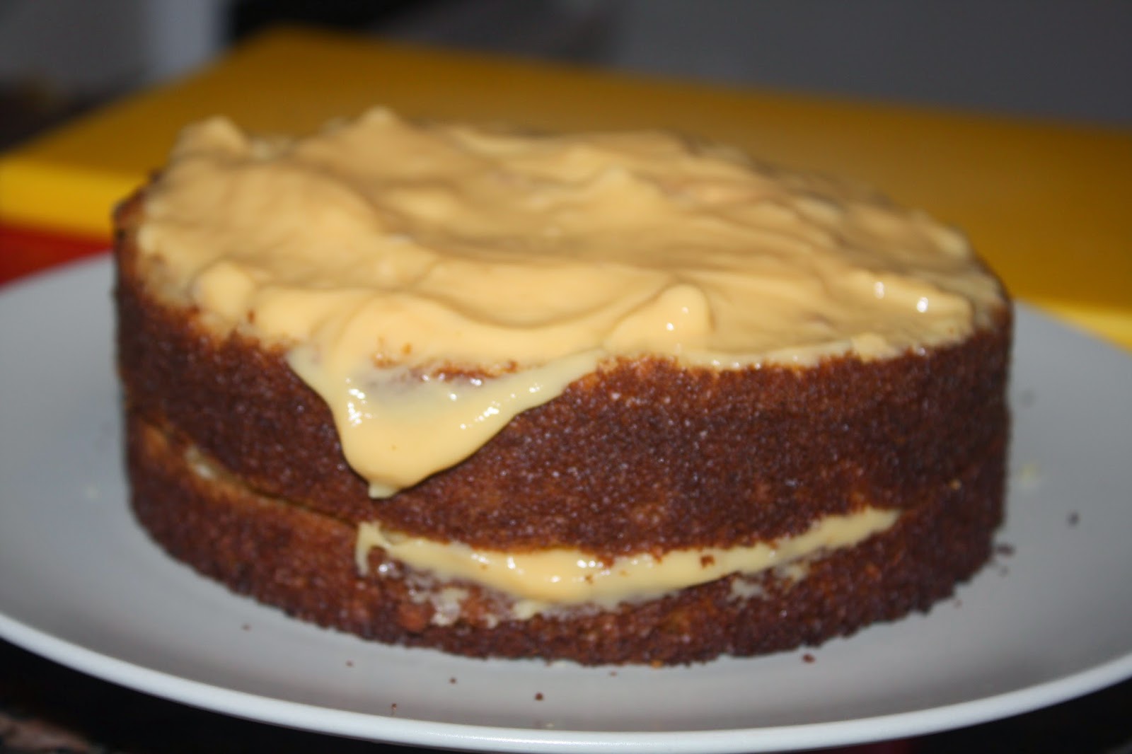 Mientras horneamos el bizcocho seguimos las instrucciones según fabricante para preparar puddin, el cual usaremos para rellenar nuestra tarta, yo usé pudding de caramelo pero si os gusta mas de otro sabor, no dudéis de cambiarlo. Dejamos la mezcla en el frigorífico hasta que cuaje.