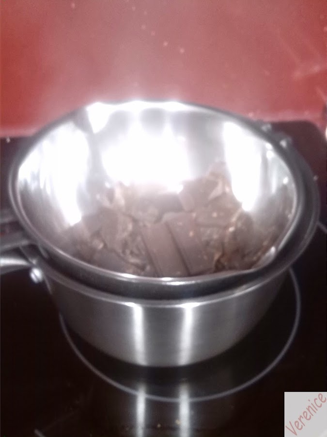 En un cazo para el baño maría se pone el chocolate a derretir, sin dejar de mover