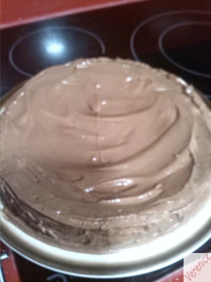 Se corta el bizcocho en tres partes y se bañan las mitades con el resultado anteriorPara la buttercream: