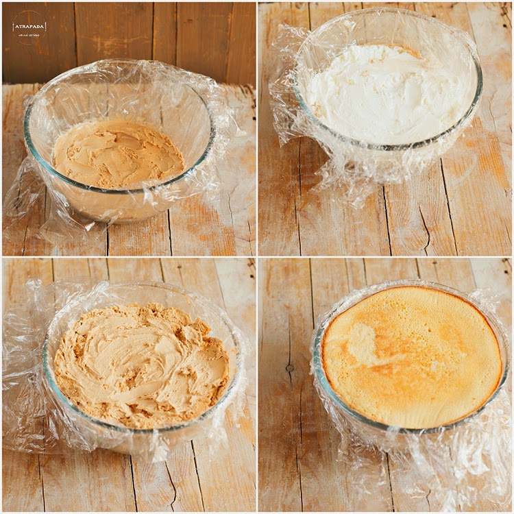 El bizcocho ya estará frío. Si viene grande cortaremos hasta adaptar al molde, y metemos dentro del bol, encima de la última capa de helado. Tapamos con el mismo papel film sobresalga del bol e introducimos en el congelador hasta que vayamos a servirla. Yo la hice con dos días de antelación. En el congelador no le pasa nada, por eso podéis adelantar el trabajo y hacerlo unos días antes.