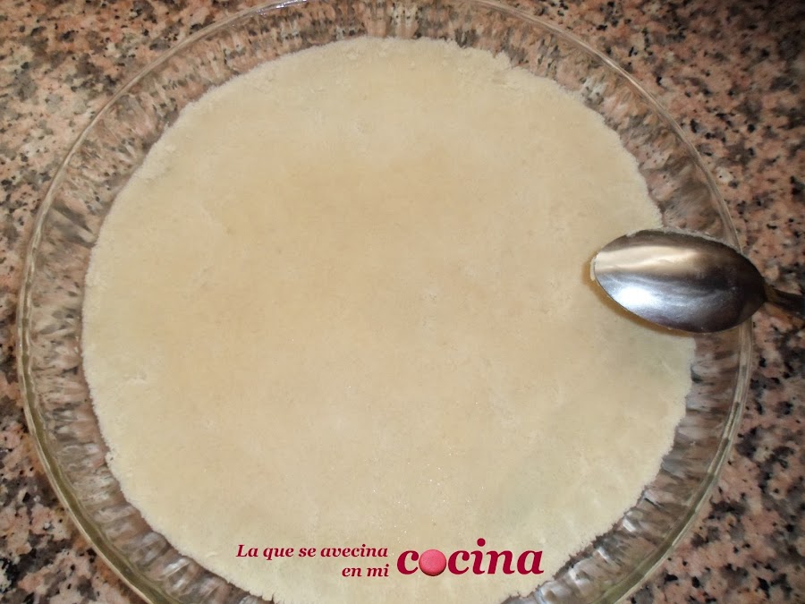 Ponemos 1/3 de la masa como base de la tarta.