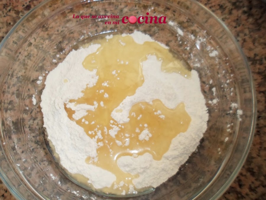 A continuación amasaremos, bien con las manos o con unas varillas. Yo primero he mezclado con unas varillas y cuando la masa se quedaba como con grumitos seguí con las manos a fin de que se quedara más homogénea.