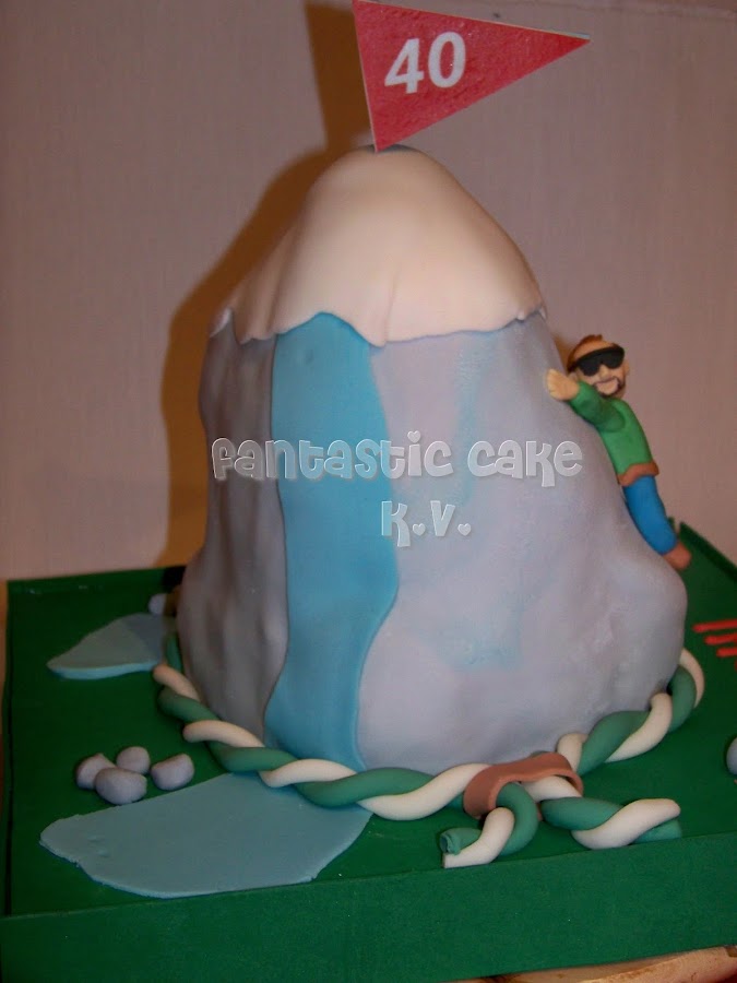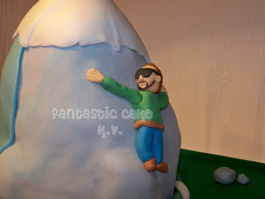 Esta tarta llevaba varios detalles. Era una montaña con glaciares, por lo tanto la parte del gris tenia detalles en azul que en la foto se aprecia muy poco, simulando el agua congelada.