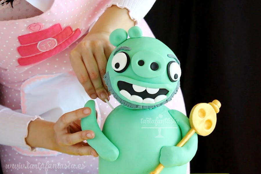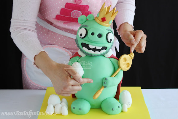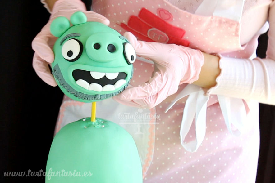 Ahora queda lo más divertido, decorar la tarta con todos los adornos que hemos estado haciendo a lo largo de varios días. La tarta hay que reforzarla por la parte superior para poder poner la cabeza en su sitio.