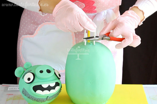 Para hacer la cabeza he usado corcho comestible. tanto en el vídeo como en el blog podéis ver como elabora el corcho, es muy sencillo y además está riquísimo. Es una forma muy eficaz de elaborar piezas comestible para nuestras tarta y además es ligero, ayudando a crear bonitas estructuras.