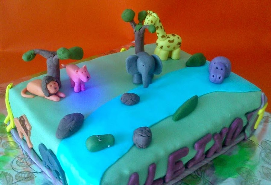 Hoy traemos una tarta infantil,la preparé para el cumple de mi sobrino Julen un renacuajo que nos lleva de cabeza él y sus animalitos, por que no he visto una criatura que le gusten tanto los animales y que disfrute jugando con ellos.Da igual que sean de la sabana como nos cuenta o de la granja. Bueno, bueno se me ocurre preguntarle como quería la tarta y me contesta; de león,de pantera,de elefan ...