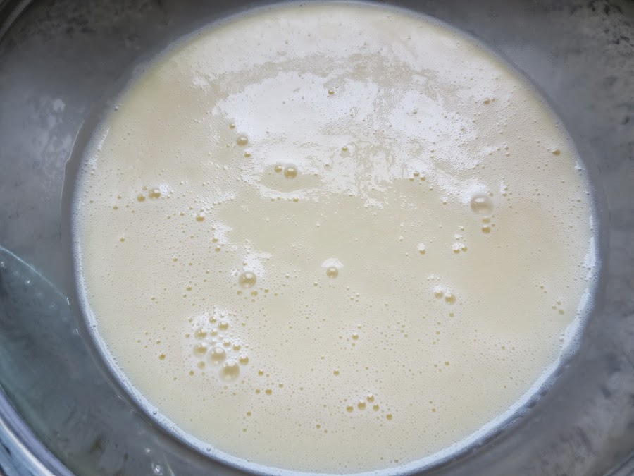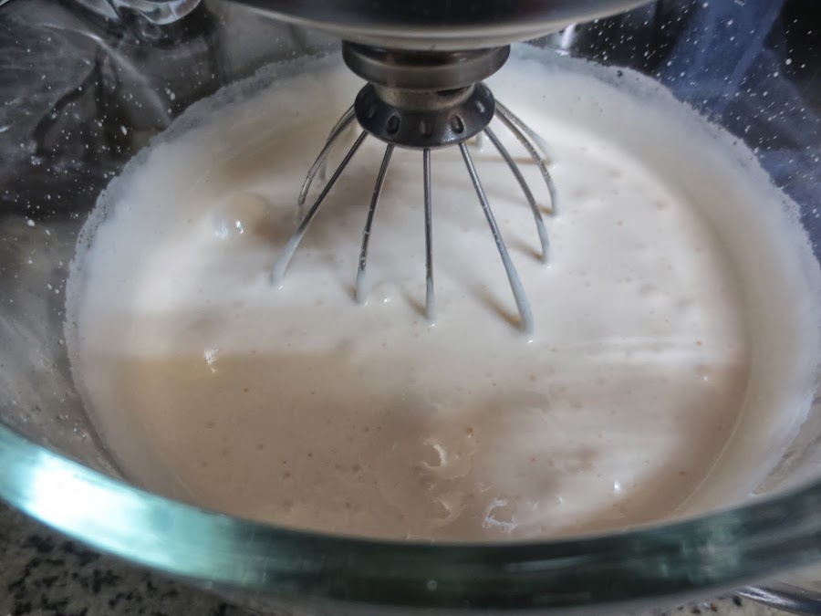 1- Colocar la varilla y blanquear los huevos con el azúcar, pizca de sal y vainilla, unos 5 minutos a máxima velocidad.