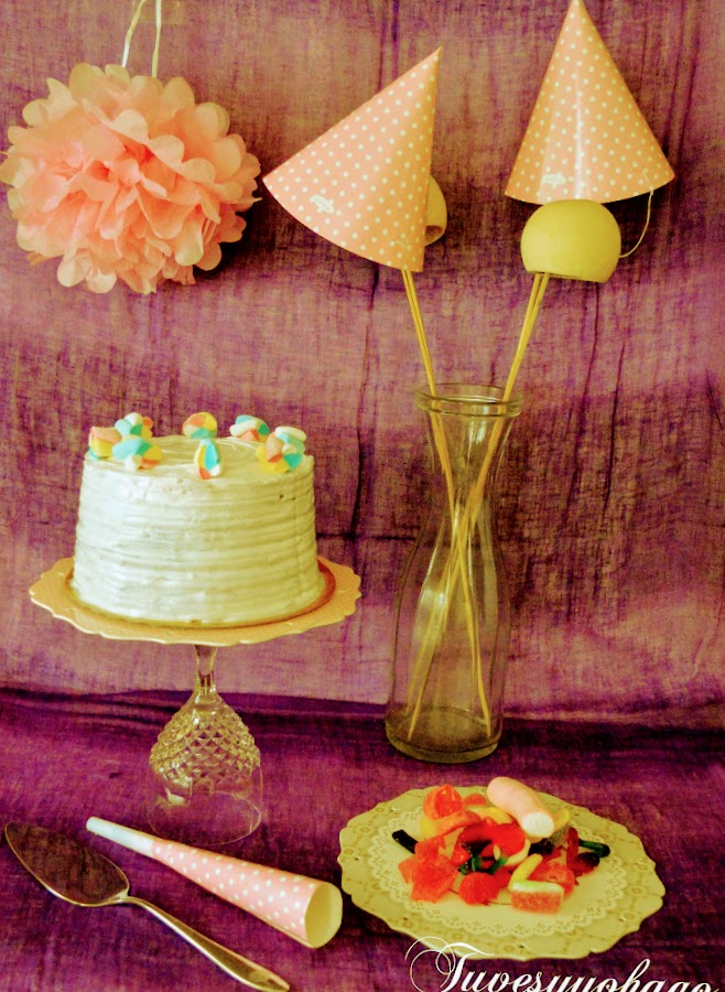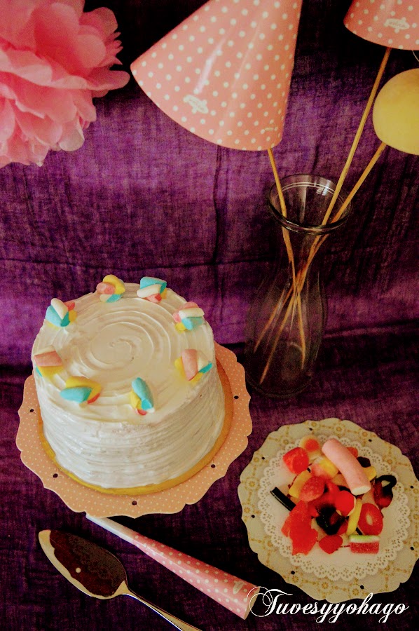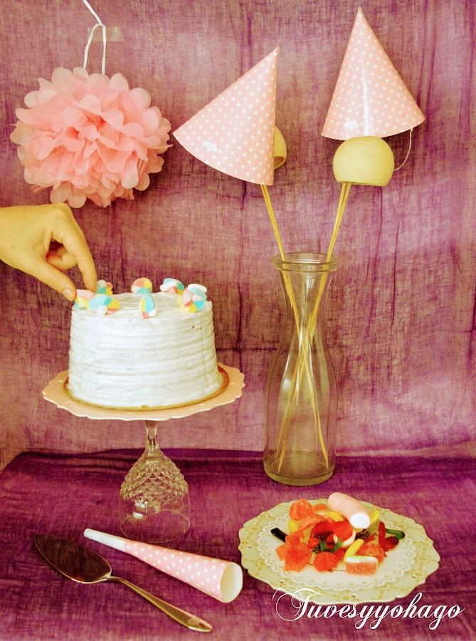 Pero tuve un pequeño problemilla, me quedé corta con la cantidad de buttercream que había preparado y no me quedó para cubrir el exterior de la tarta, por eso lo solucioné preparando una cobertura de merengue suizo nada más, que dió a la tarta una textura y un sabor espectacular.