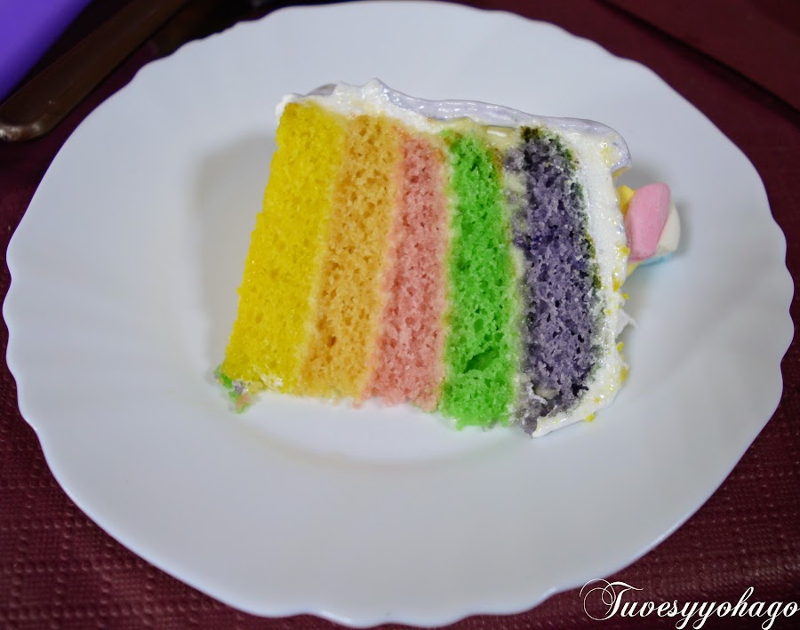 Para MONTAR LA TARTA iremos alternando una capa de bizcocho con una capa de buttercream de merengue suizo, hasta conseguir formar nuestro arco iris.