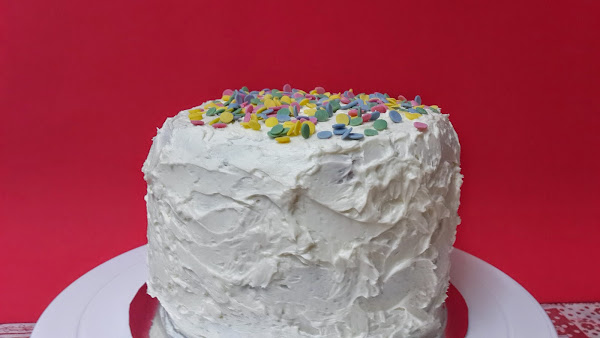 Con el resto de la crema cubriremos toda la tarta, bien cubierta que no se vea ni una pizca de los colores de su interior, así cuando cortemos las porciones sorprenderemos a todo el mundo, jejeje, es un momento genial de verdad.