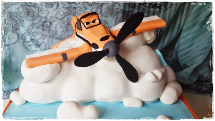 decidimos hacerle una tarta original, con su avión de la película Aviones pero en lugar de una tarta cuadrada o redonda esta vez optamos por darle forma.