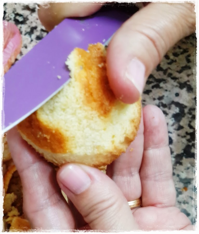 Una vez están hechos y enfriados con un cuchillo les daremos forma redondeada.