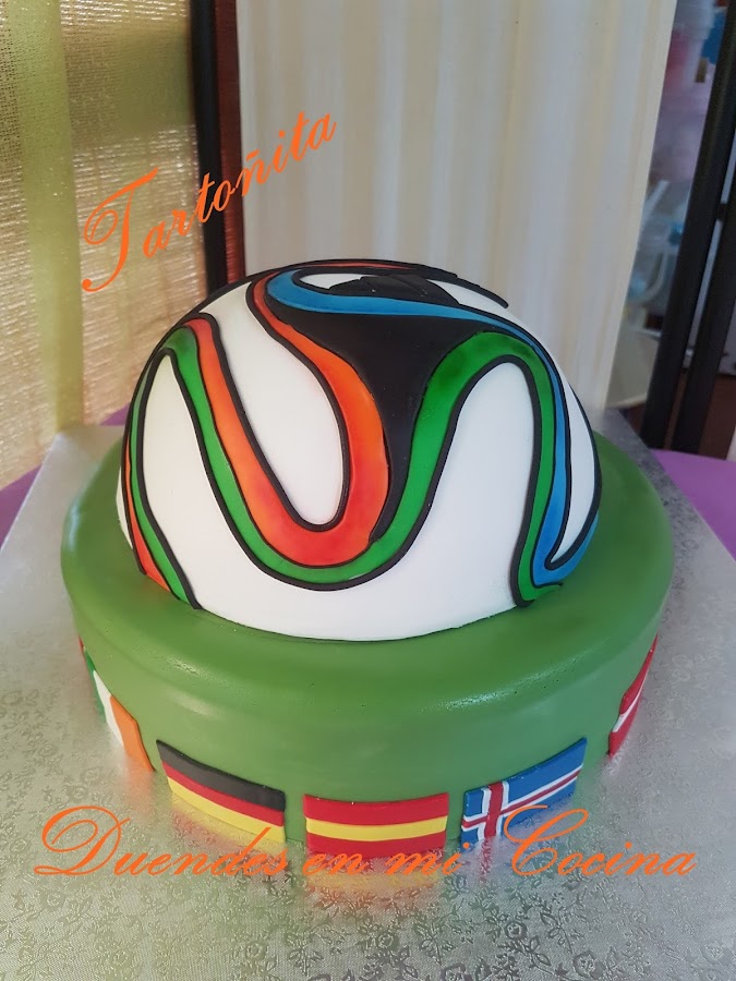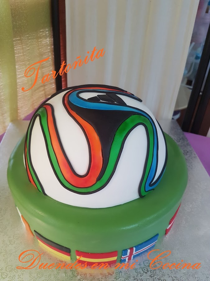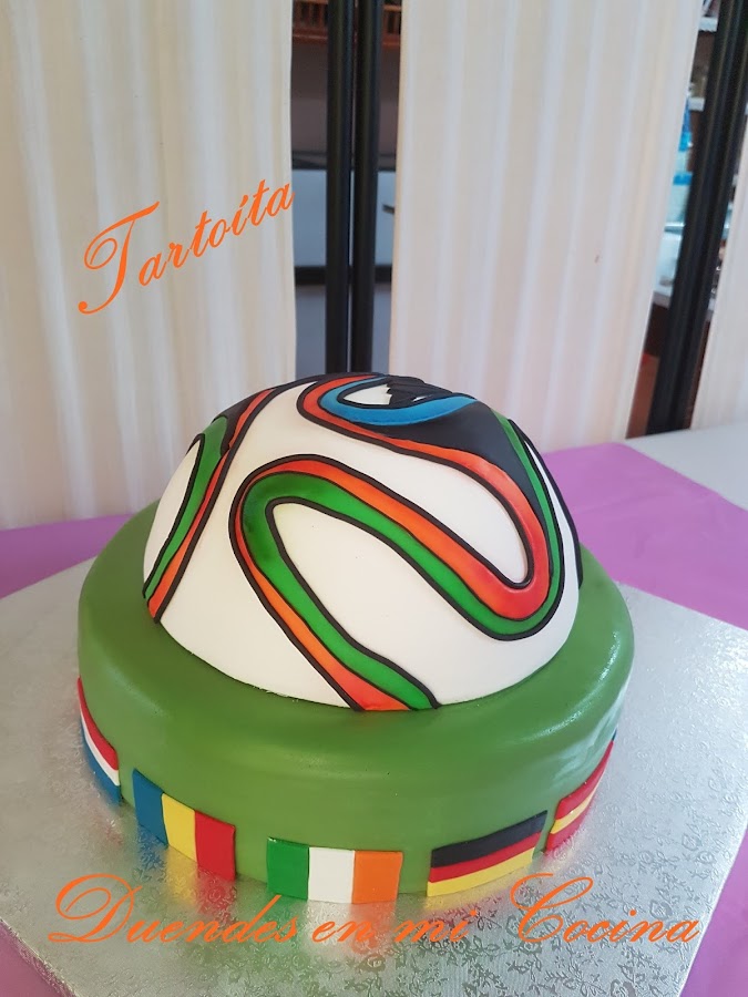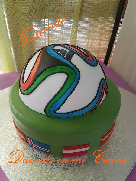 Hace unas semanas, Manuel se puso en contacto conmigo para encargarme una tarta de cumpleaños para su hijo. No tenía una idea definida y cuando me dijo que cumplía 15 años le propuse el balón. Quedo encantado con la propuesta y acordamos que ese seria el tema. Con respecto al bizcocho, chocolate negro con relleno de confitura de fresa la capa mas amplia y chocolate en la capa superior. Las tart ...