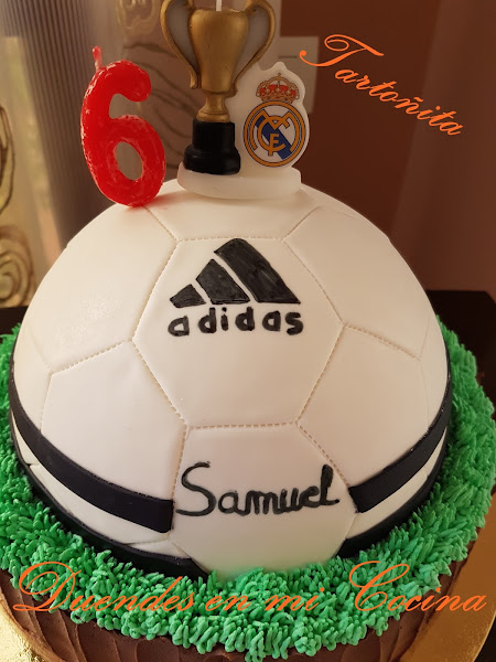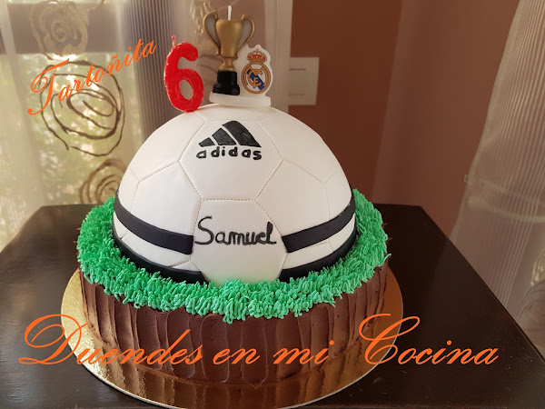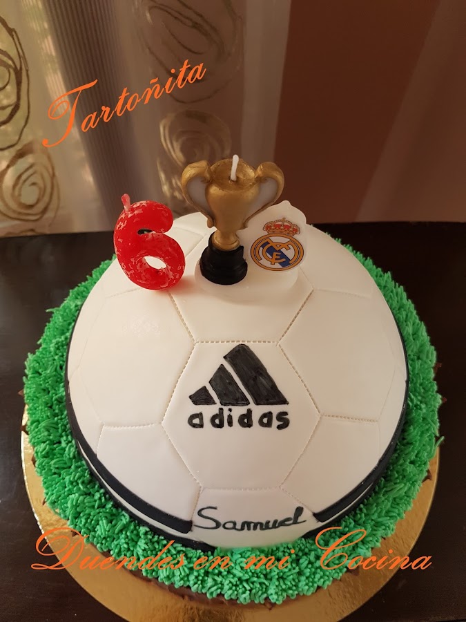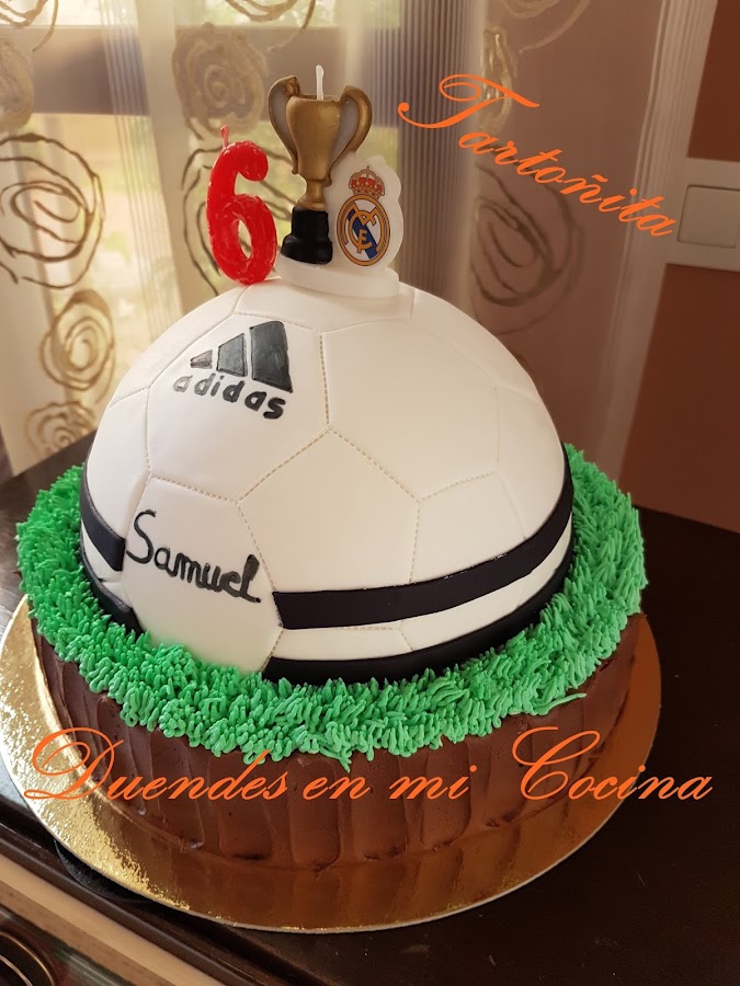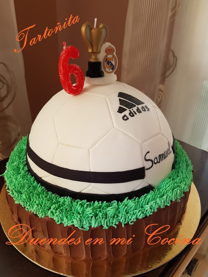 Hola a tod@s, aquí os dejo unas imágenes de la tarta que hicimos para el cumple de un pequeñín forofo del Real Madrid.