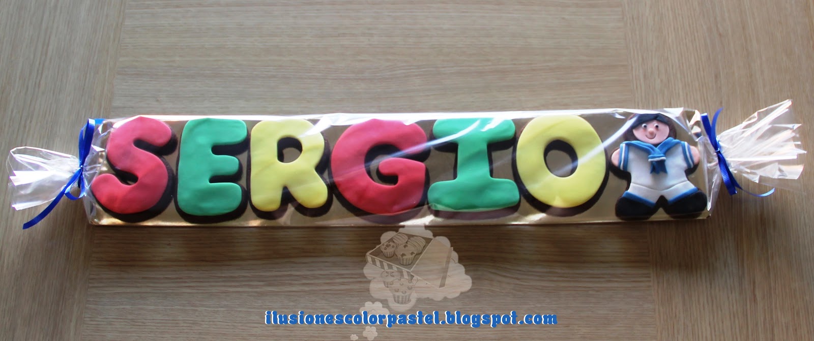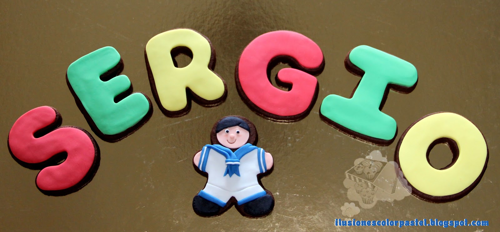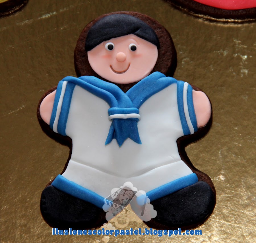 Un detalle bonito para acompañar los regalos en las comuniones de los familiares a dichos protagonistas.... es hacerles su nombre en galleta con el protagonista en cuestión vestido de gala... Esa fue la idea que tuvo Malele para su sobrino Sergio, me mando una foto del niño y este fue el paquetito que le preparé para acompañar el regalo que le habían comprado ^_^
