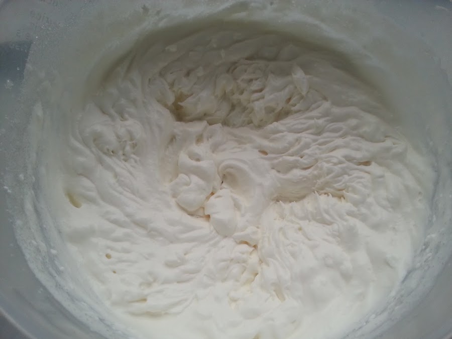 7. - Montamos la nata (crema de leche) con el azúcar .