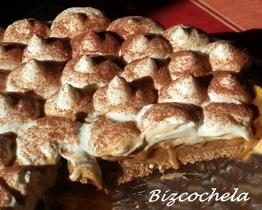 El nombre de la tarta casi que nos dice en qué consiste, si unimos banana y toffee.....la palabra resultante es Banoffee, estaba claro no?
