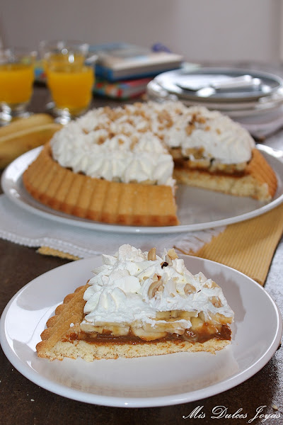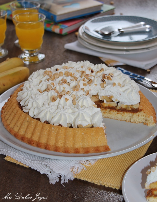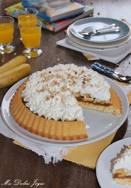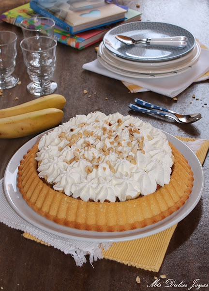 Aunque el Banoffe normalmente se suele preparar con una base de masa quebrada, o de galletas trituradas, a mi me encanta esta versión con la base de bizcocho. Imaginaos, dulce de leche acompañado de rodajas de plátano, de ese bizcocho ligero y esponjoso... y todo rematado con la nata montada (crema de leche), es una maravilla !!! Es un bocado suave, delicioso e irresistible !!!!