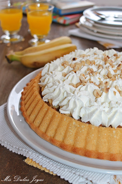 Esta tarta, como bien dice su nombre, es una tarta al estilo del Banoffe Pie. El Banoffe Pie se compone de una base de masa quebrada, una capa de dulce de leche, una capa de plátanos cortados en rodajas y se cubre con nata montada (crema de leche) o crema chantilly (que no es más que nata (crema de leche) endulzada y aromatizada con vainilla). Fue inventado por Nigel Mackenzie y Ian Dowding, el dueño y el chef del restaurante "The Hungry Monk Restaurante" en Jevington de East Sussex, Inglaterra. En el año 1971 estos dos británicos crearon dicho postre en su restaurante, y resultó ser tan popular entre sus clientes, que no podían quitárselo del menú. La receta fue publicada por primera vez en 1974 en el libro "Los secretos más profundos del Hungry Monk", y desde que se dio a conocer públicamente este postre se ha hecho popular en todo el mundo a velocidad de vértigo.