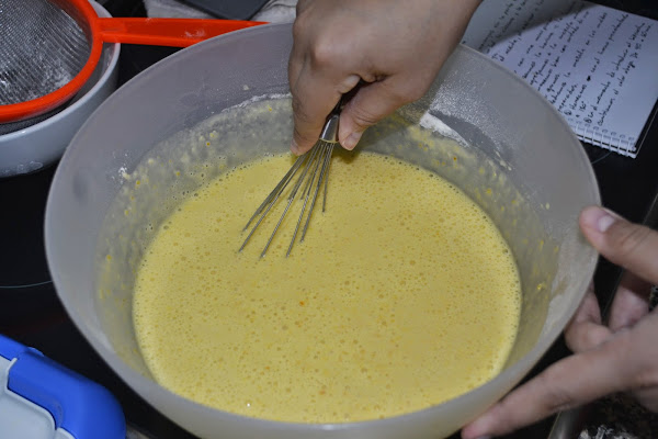Agrega a la mezcla anterior y remueve con una espátula o varillas procurando no dejar grumos.