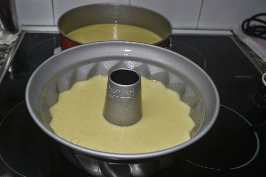 Un día me decidí y me puse a preparar los bizcochos, al principio pensé que haciendo uno de 24 cm y otro con un molde de bundt cake serviría por el agujero que traen en el centro, pero al final he necesitado dos de 24 cm mas el de bundt para que quedara a la altura de la Barbie. La receta que te dejo es para un solo molde, en mi caso hice tres veces la receta para los tres moldes que usé, en tu caso puedes triplicar los ingredientes y hacer todo de una vez si tienes todos los moldes, yo no he podido porque solo tenia dos moldes y he ido horneando uno a uno.