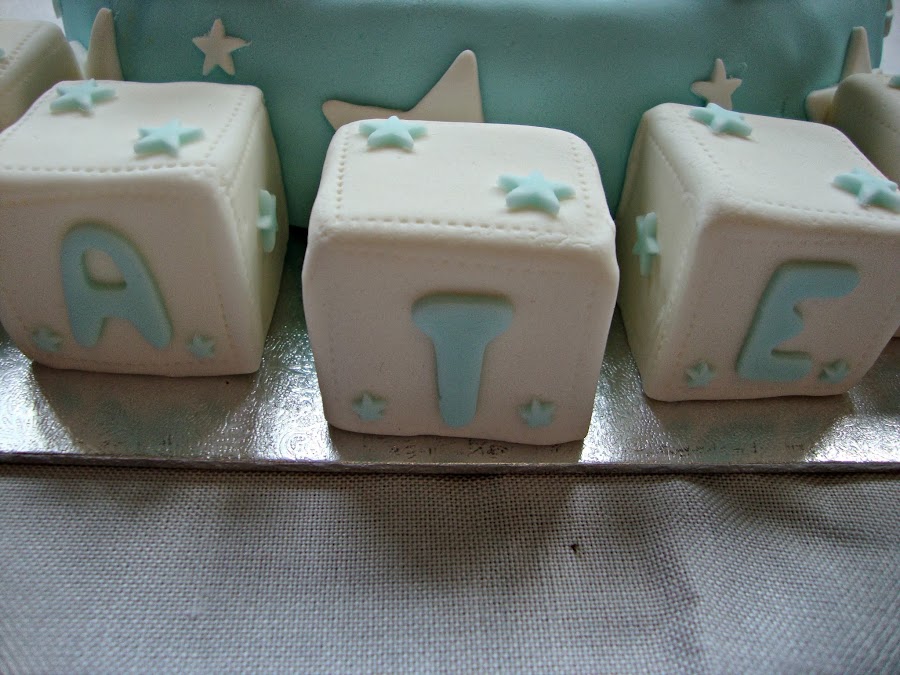 Los detalles de fondant eran unos cubos con su nombre