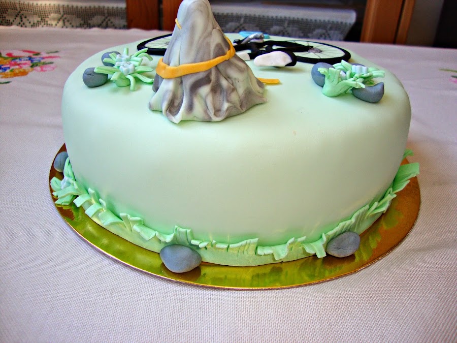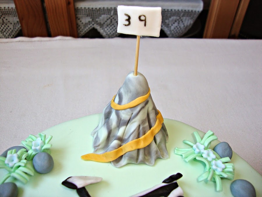 Puse algunos detalles de plantas, piedras y flores porque iba a haber algunos niños en el cumple y les gusta siempre comerse alguna cosita de fondant.