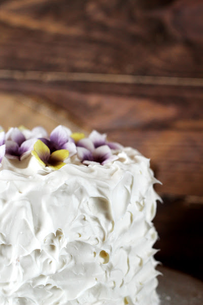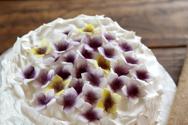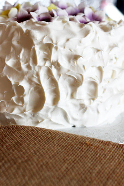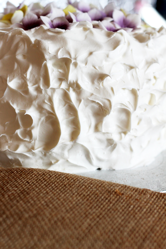 Cubrir la tarta con una buena capa de nata (crema de leche) y poco a poco con la espátula le iremos dando golpecitos para que queden estos picos tan bonitos e irregulares.