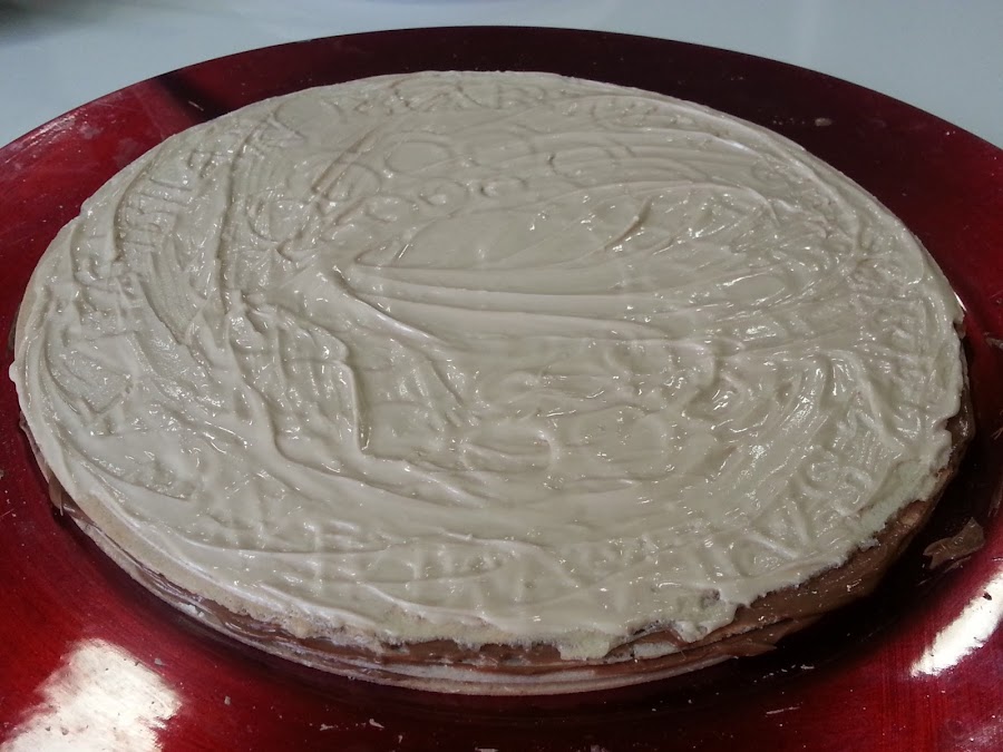 3. - Luego hacemos lo mismo pero con la crema blanca y otras 4 obleas. Y al final las 4 últimas con la de cacao.