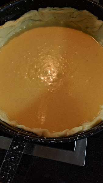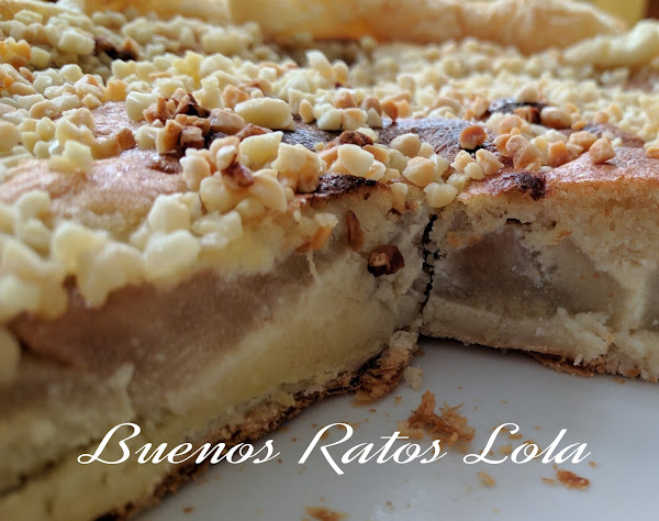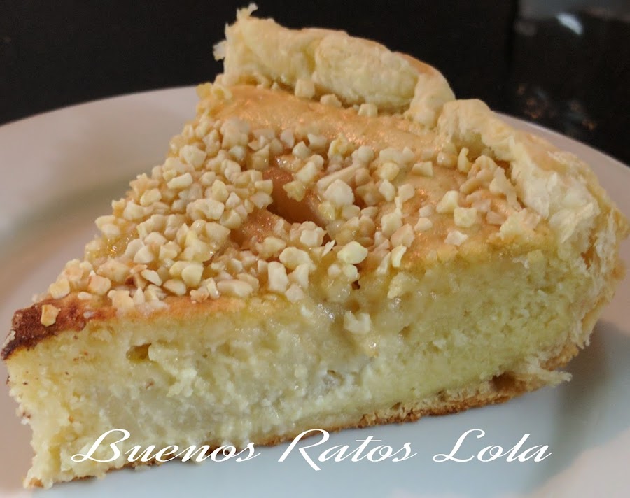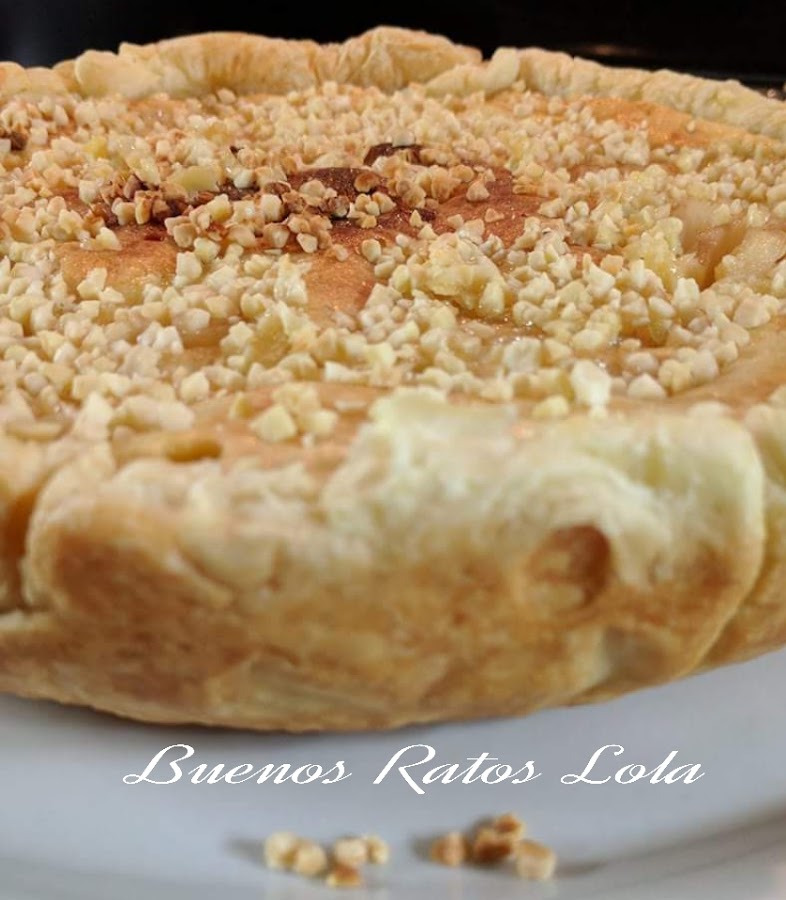 Batimos los ingredientes de la crema y la volcamos en el hojaldre. Preparamos las peras como os enseño en las fotos y las disponemos encima de la crema