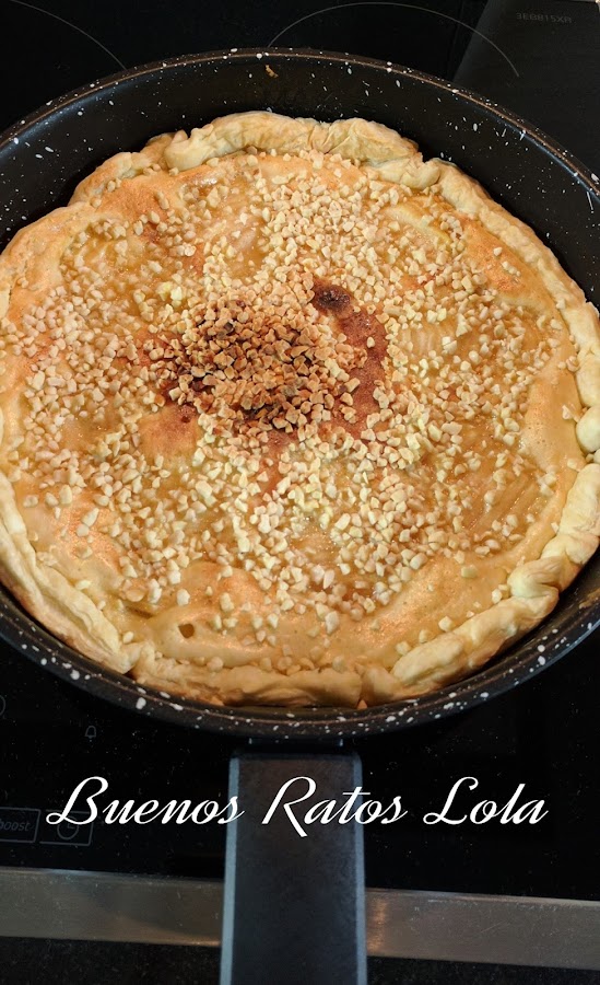 Cuando faltan unos tres minutos cubrimos la superficie con almendra en granillo y seguimos horneando hasta que se dore. Dejamos 5 minutos apagada y comprobamos con un palillo que está hecha. Dejad que se enfríe para desmoldar. Tenéis que dar la vuelta con dos fuentes redondas para que no se desmorone la tarta y así evitar que se caiga la almendra