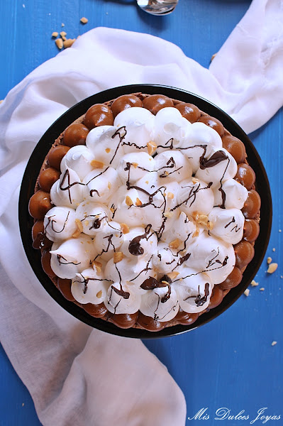 Tarta brownie con dulce de leche, merengue y cacahuetes