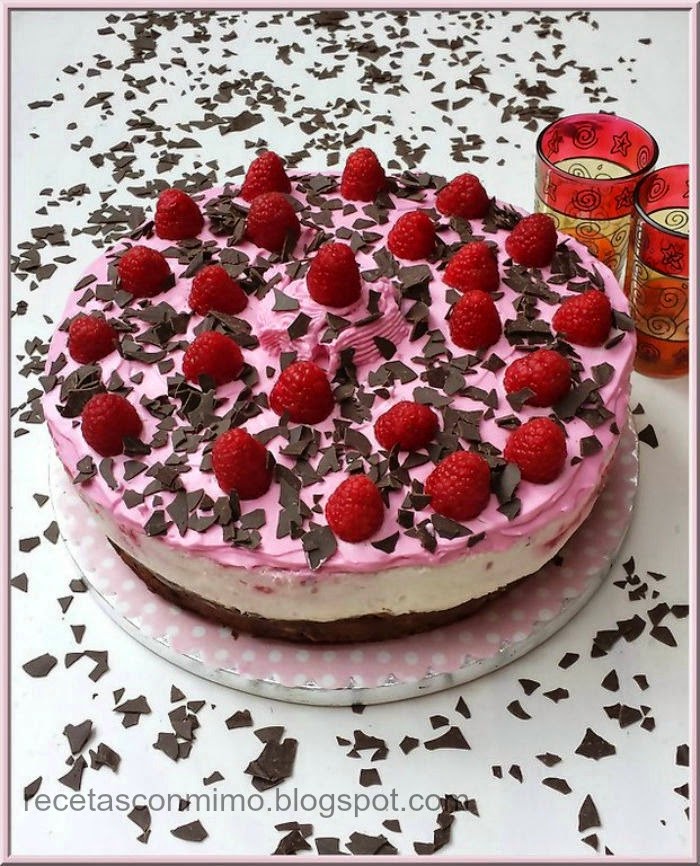 3- Decoramos al gusto con frambuesas y virutas de chocolate.