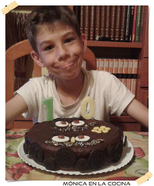 Para la orejas, partir una tapa de oreo sin relleno por la mitad. Una vez decorada, meter en la nevera y dejar enfriar.