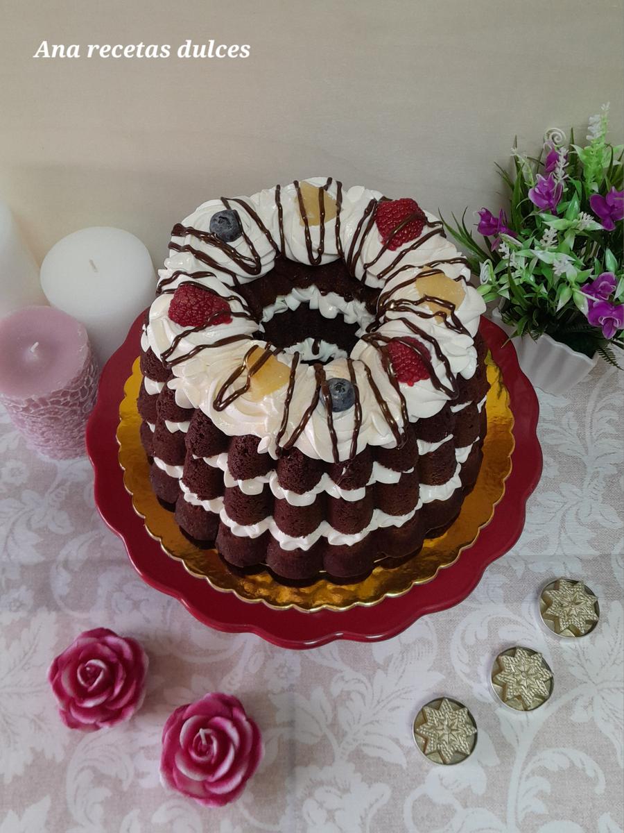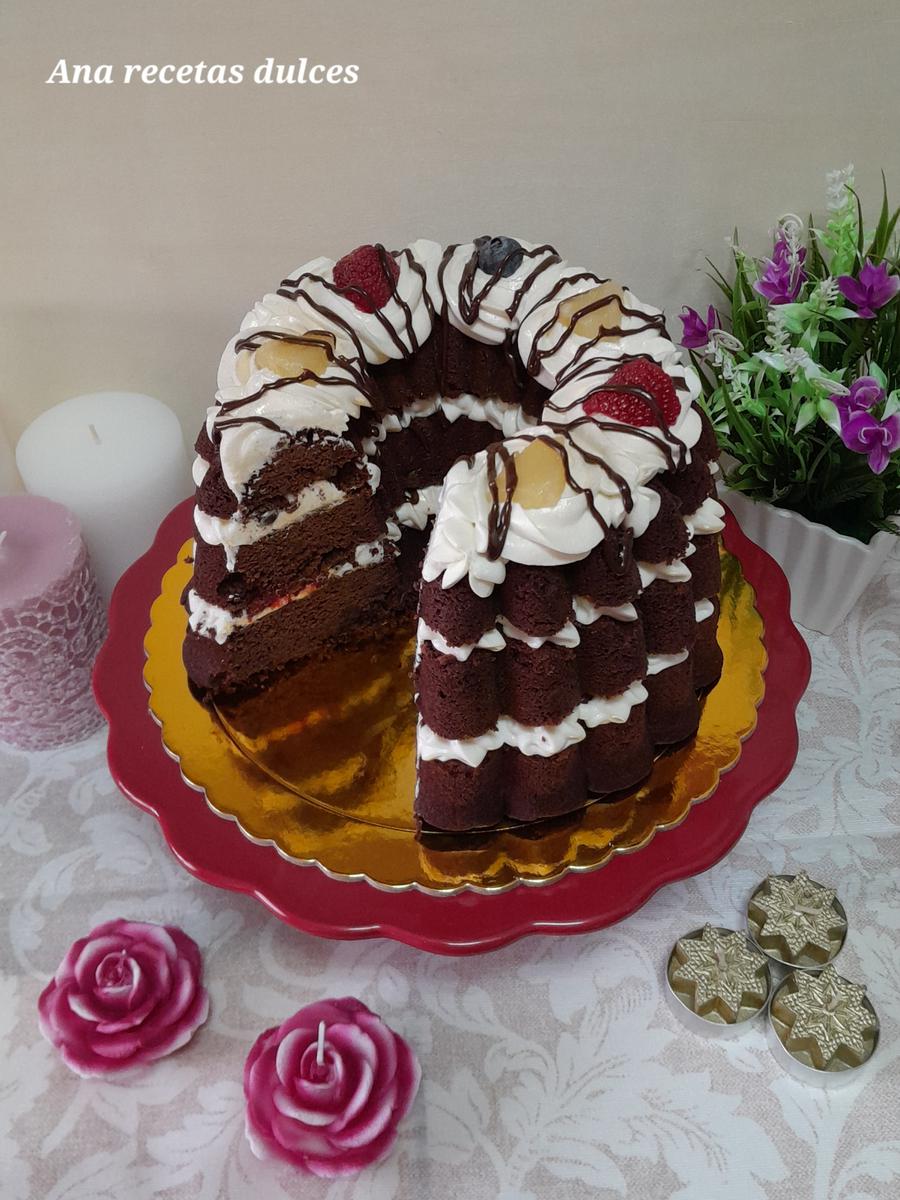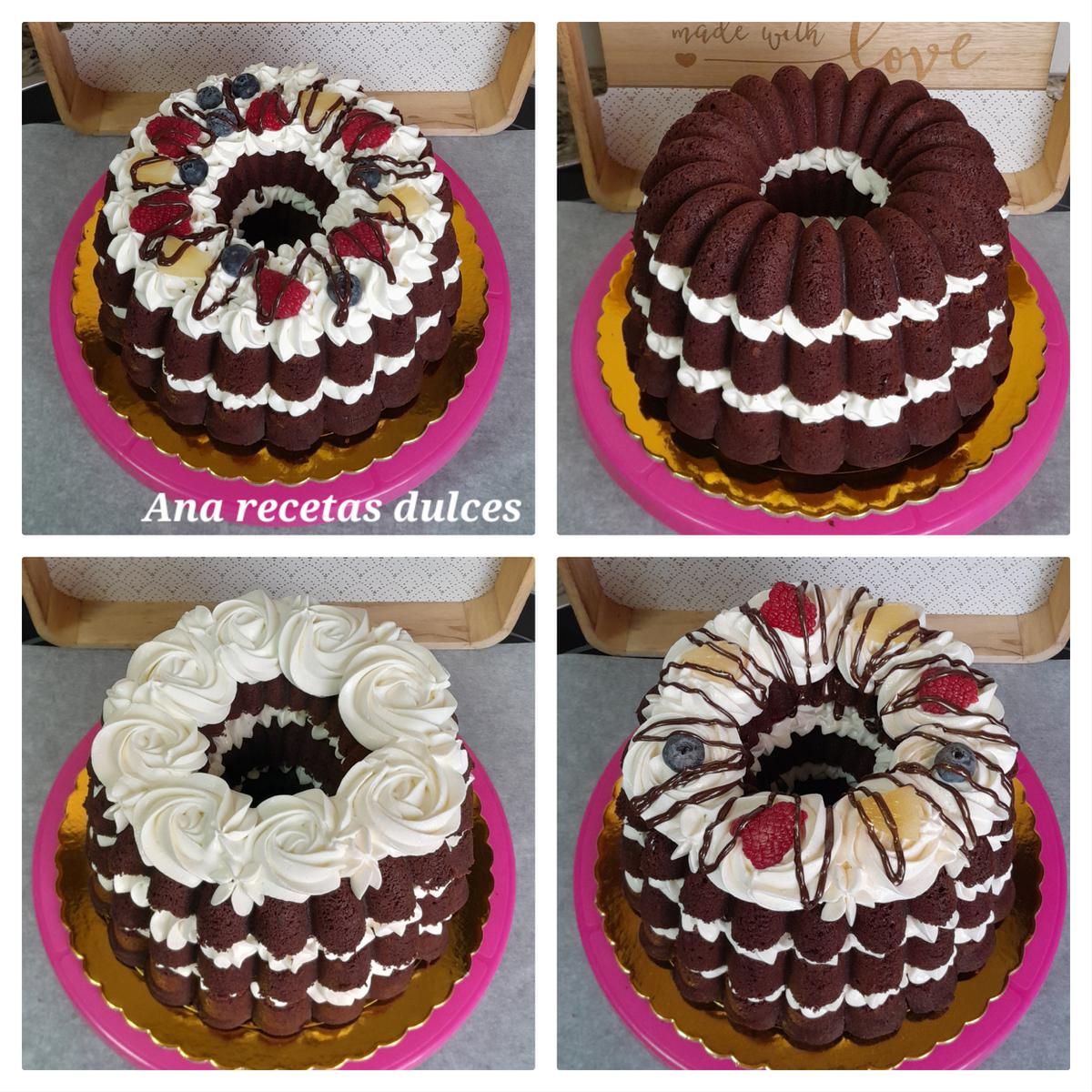 No tenéis que usar el mismo molde que he usado yo, podéis utilizar cualquier molde de corona que tengais o incluso hacerla en un molde redondo y hacerla tipo nude cake (pastel desnudo), podéis ver la receta (aquí).