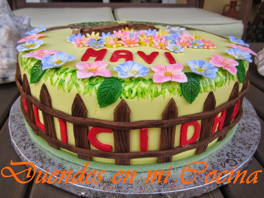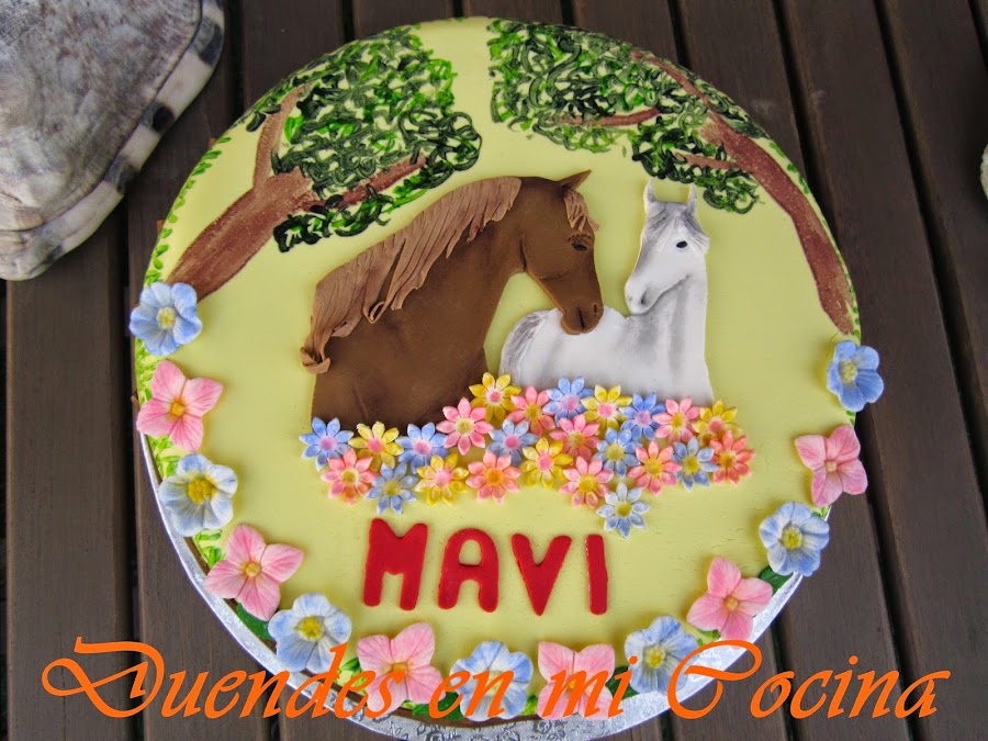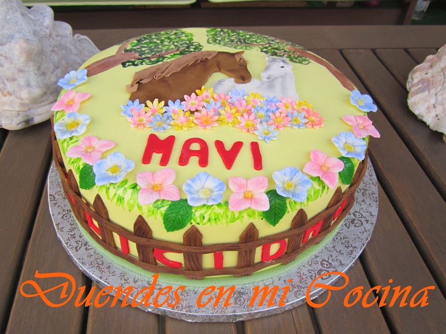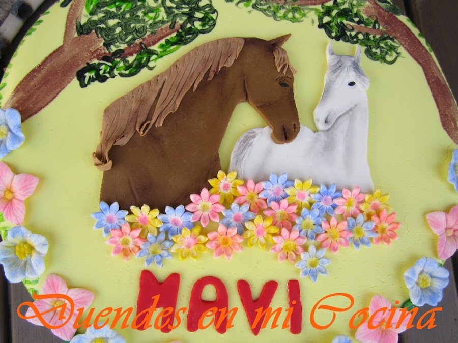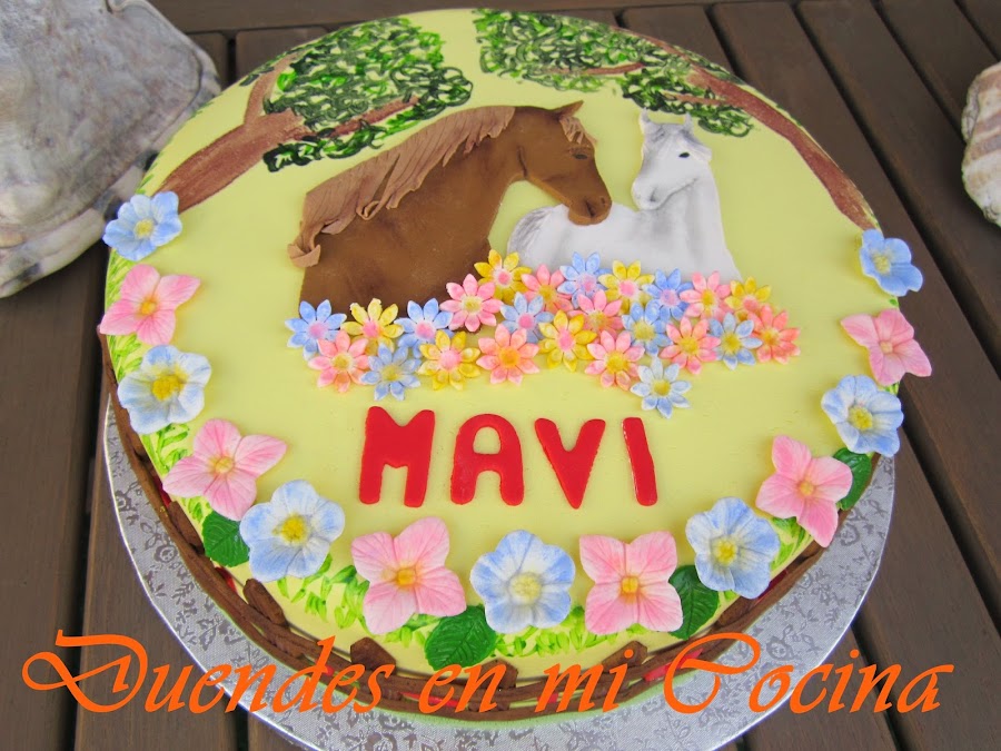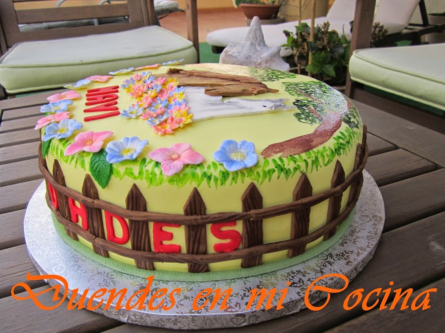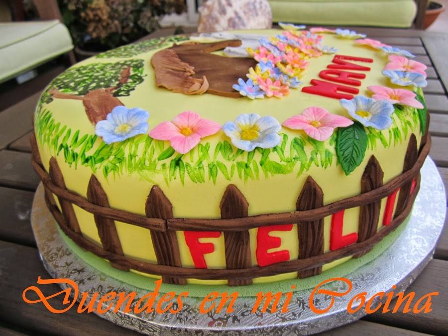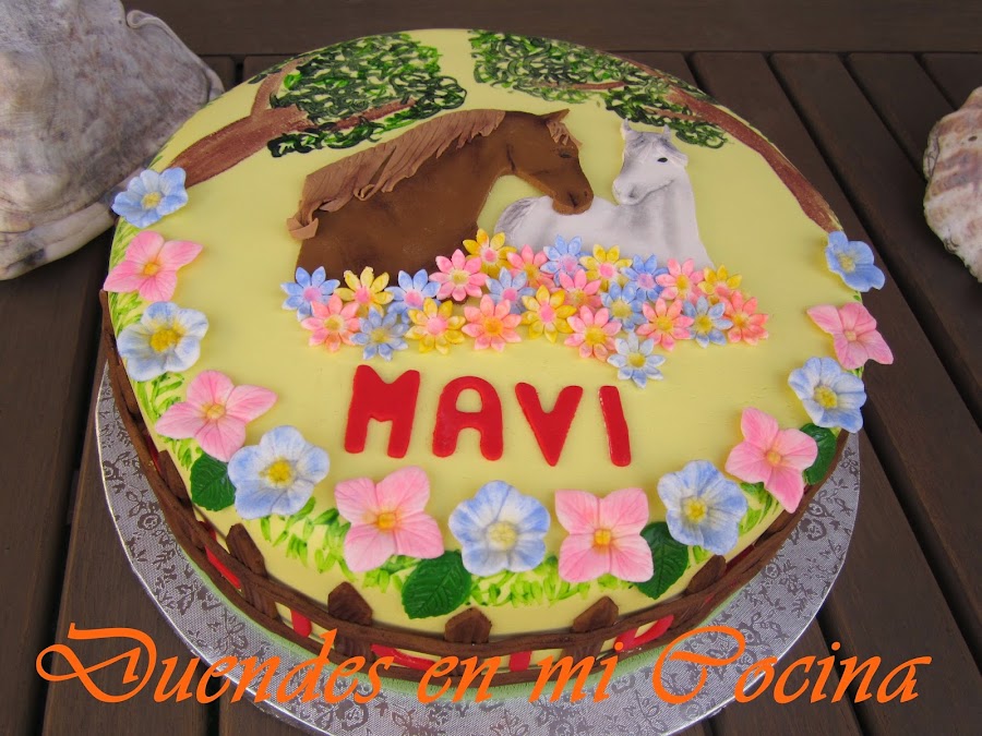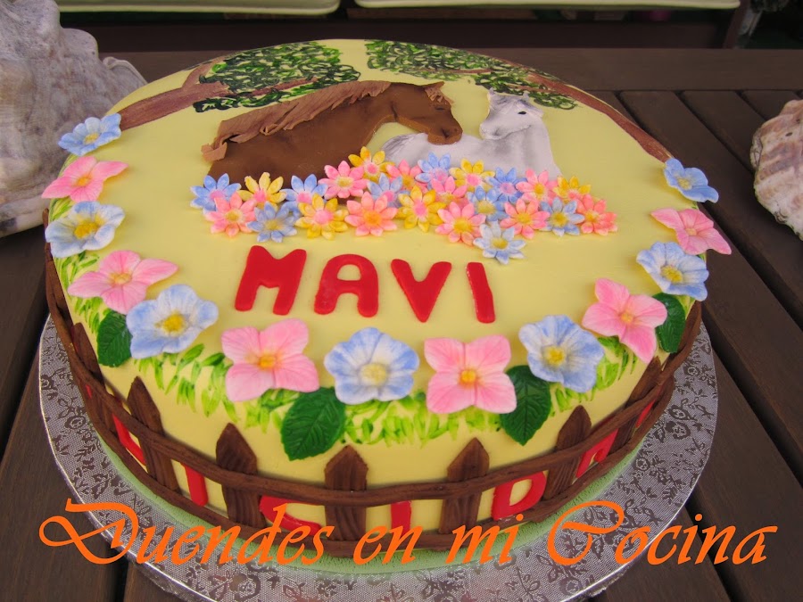 Esta tarta es una de los últimos encargos que he recibido. Me la encargaron para que fuera una sorpresa para la chica que cumplía años. Tenía que ser con la temática de caballos, pues le encantan los caballos y también me comentaron que el color amarillo le gustaba muchísimo.