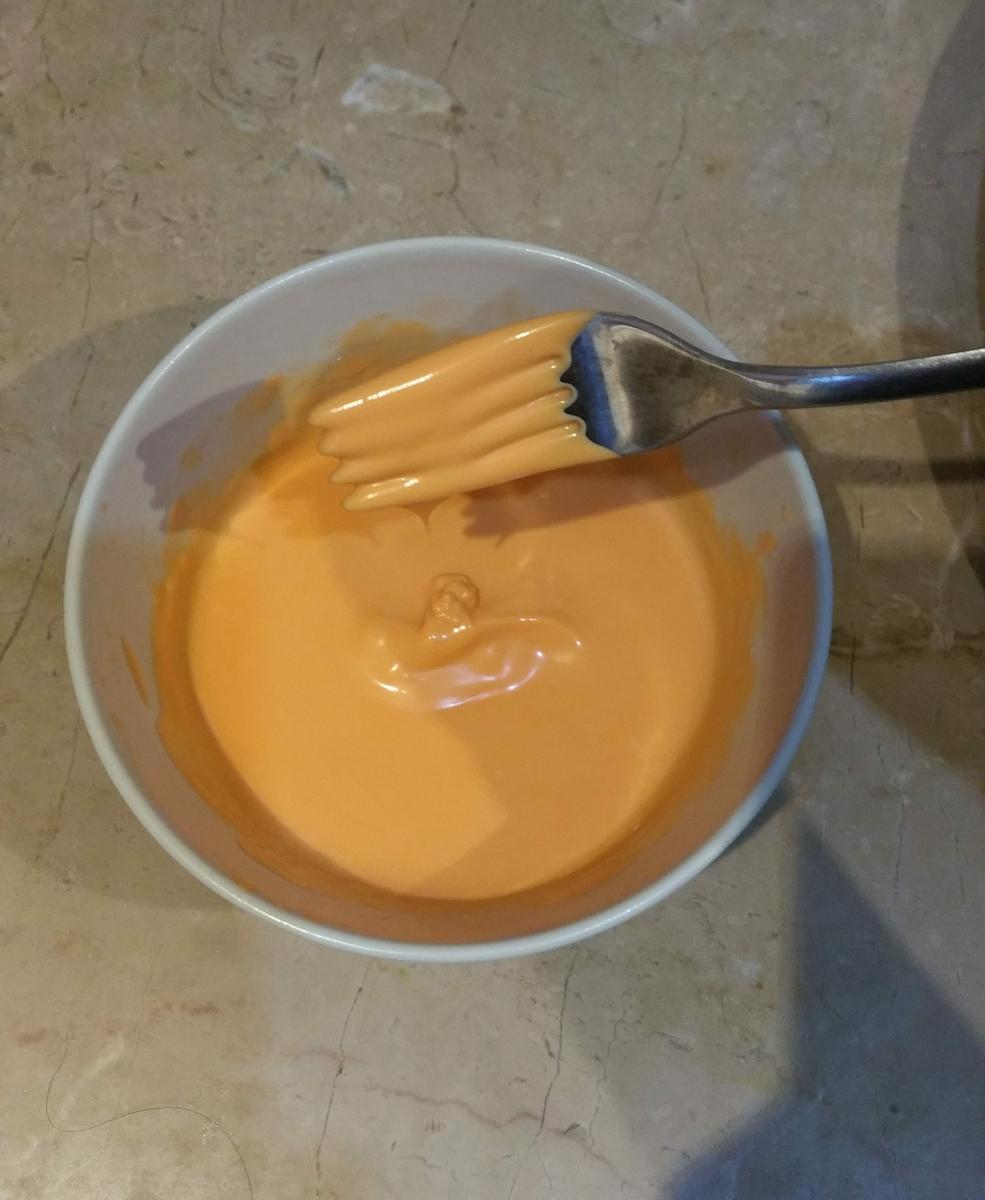 Impepinablemente tiene que ser NARANJA, yo compré Candy Melts de color naranja