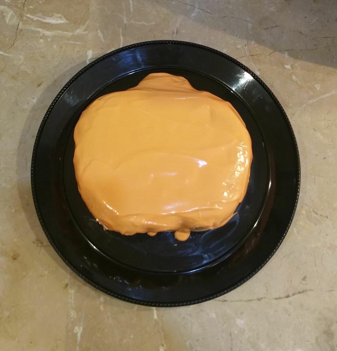 Cuando esté bien fundido vertemos sobre la tarta, podemos ayudarnos de una espátula para repartir bien el chocolate.