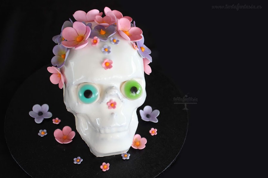 para un bizcocho calavera de 20.5 x 12 cm, y 10 cm de alto aproximadamente.