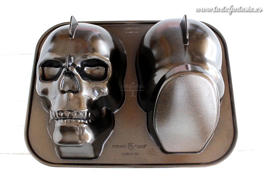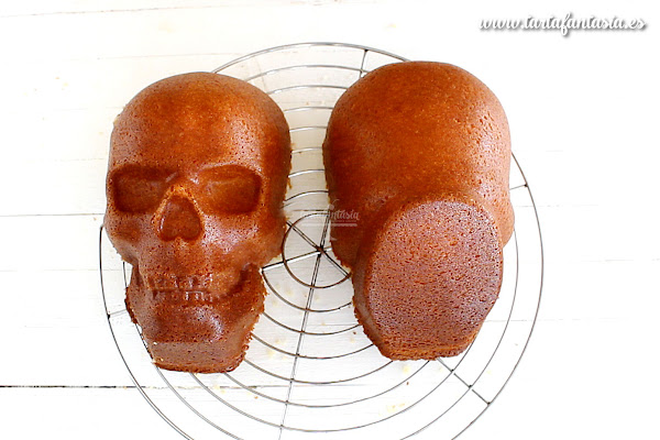 Voy a escribir los ingredientes exactos para el molde de calavera tanto del bizcocho como para la cobertura son: