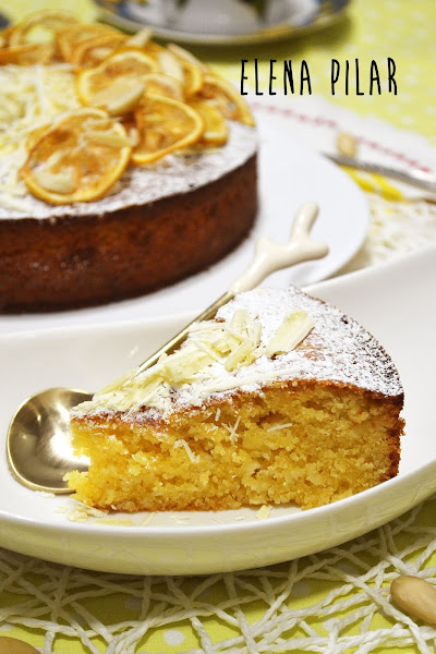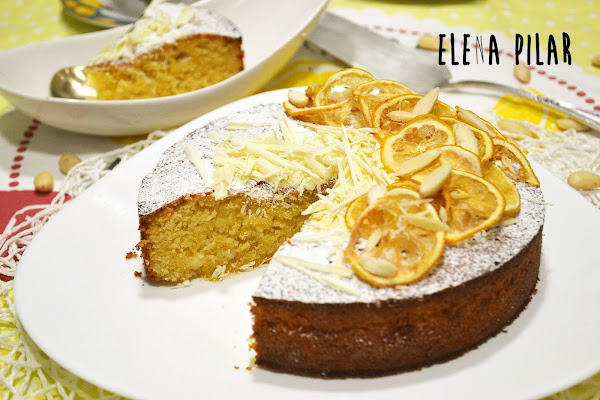 Horneamos 45-50 minutos a 180ºC. Dejamos enfriar por completo antes de desmoldar. Por último, la decoré con unas virutas de chocolate blanco, almendras crudas y unas rodajas de limón deshidratado (tengo obsesión con la deshidratación; me ha dado por ahí, y últimamente quiero deshidratar todo lo que pillo ^_^).