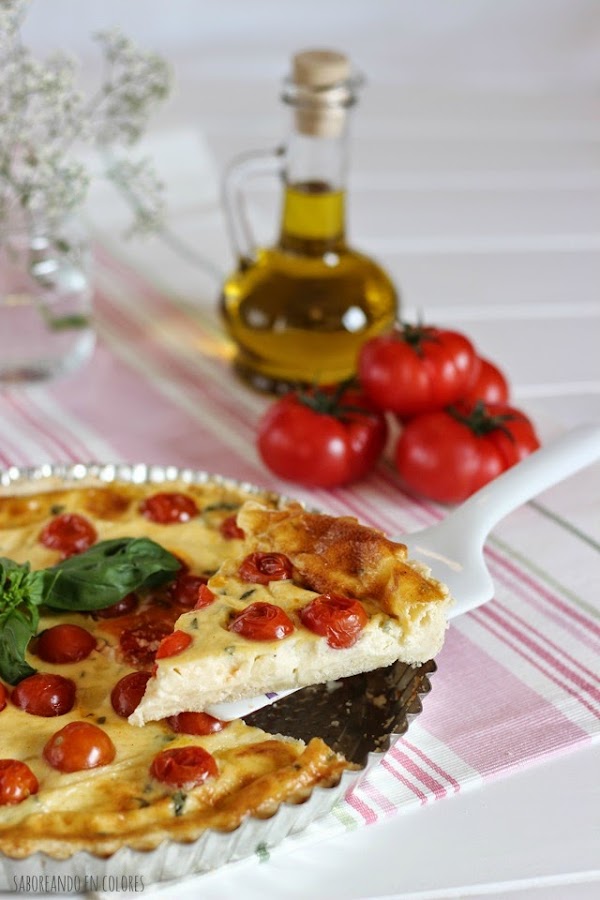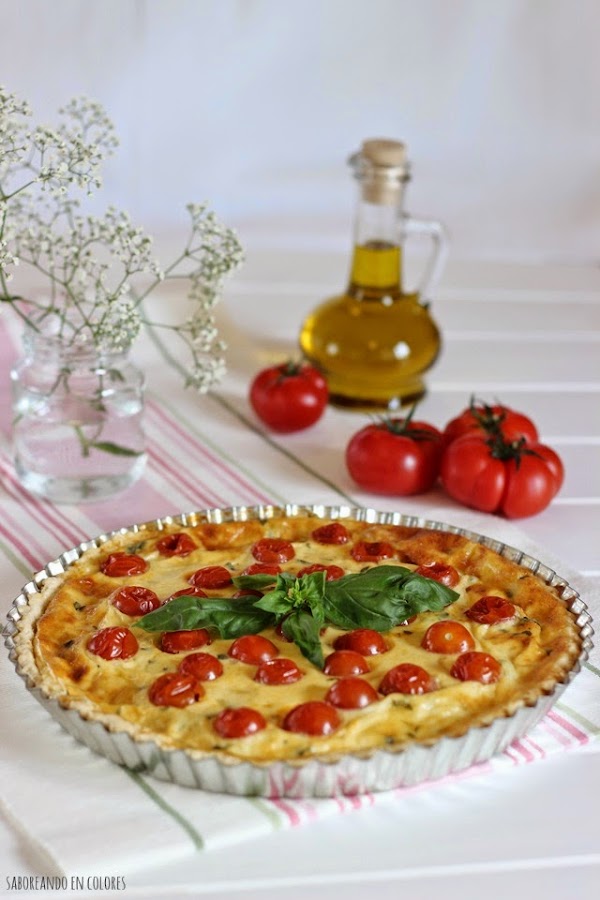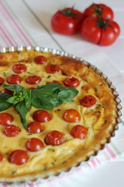 La cuestión es que como más me gustan los tomates son combinados con la albahaca, otra delicia. Y con queso mozarella, ni qué decir. La mundialmente famosa ensalada caprese, y que ahora he traducido en una riquísima tarta salada que os invito a probar.