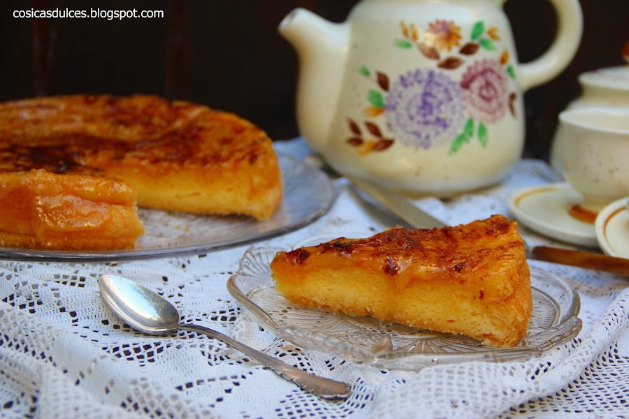 Vertemos todo el almíbar caliente sobre el bizcocho, sin desmoldar, que también debe estar caliente (podemos pincharlo un poco para que cale mejor) y dejamos reposar al menos 12 horas.