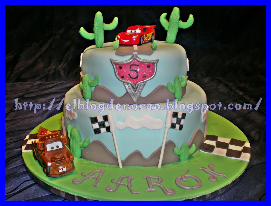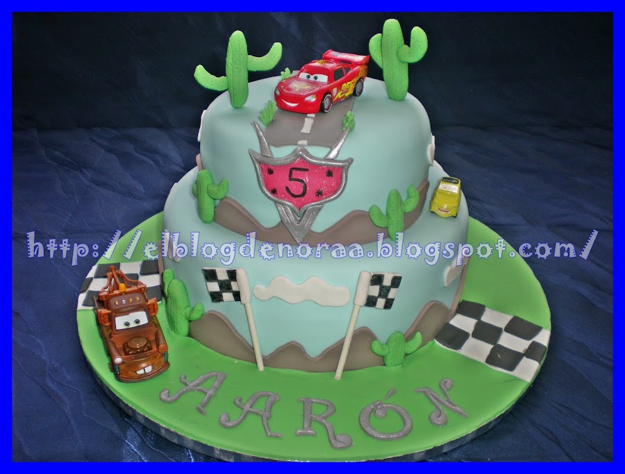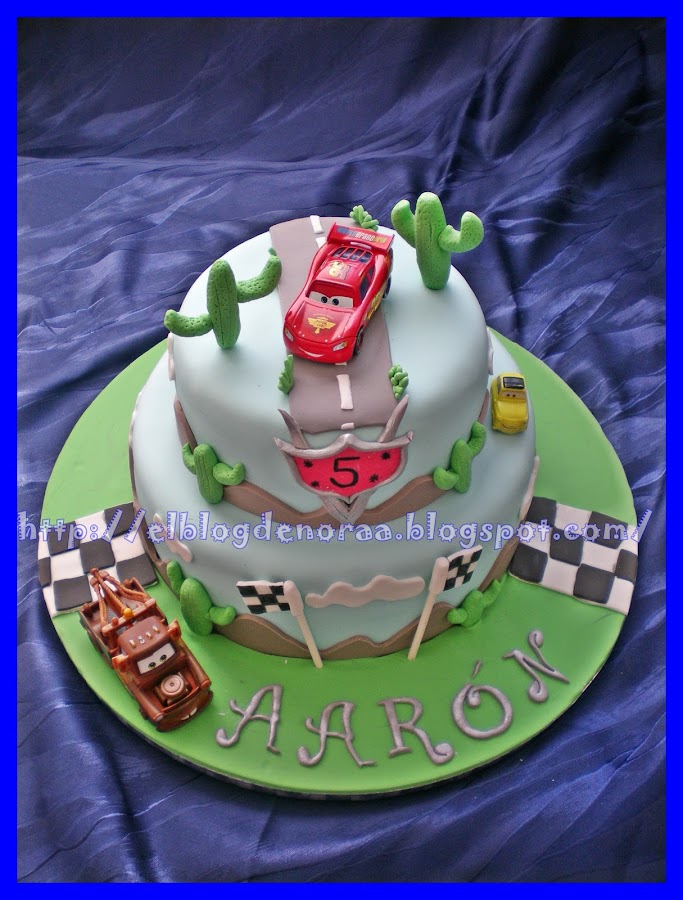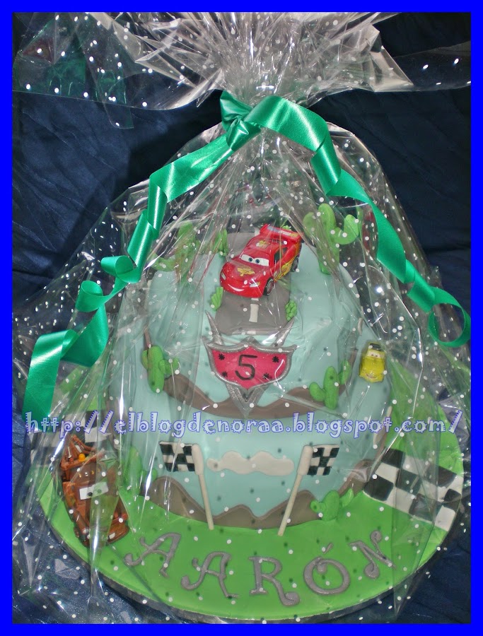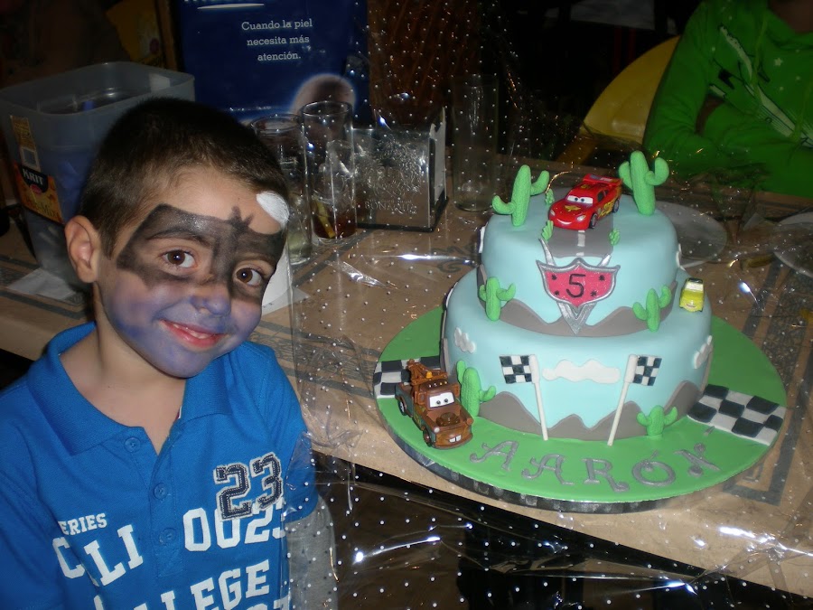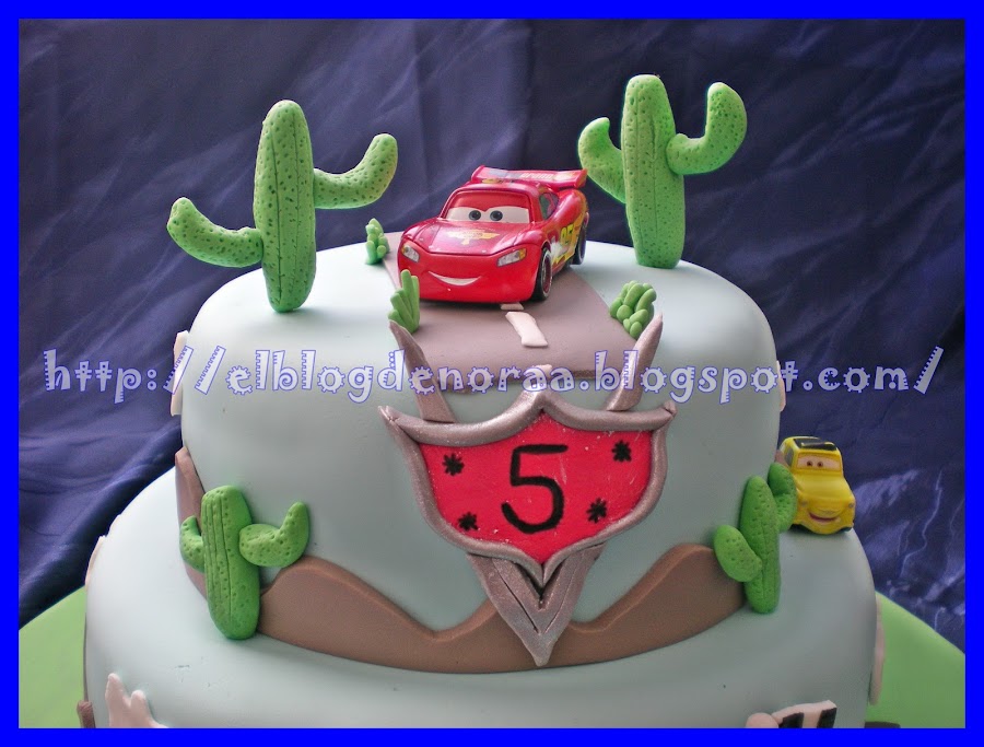 Sí, ya lo sé ¿por que no he modelado los coches? pues por la sencilla razón de que me lleva unas semanas pidiendome los coches de Cars 2 y bueno, se me ocurrió ponérselos de regalo sobre la tarta y lo primero que dijo al ver su tarta fué: "mama, mama!!!! ¿los coches son de verdad?" y se llevó una alegría cuando le dije que siiiiii!!!!