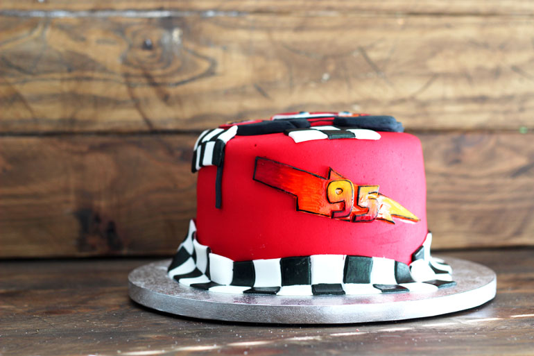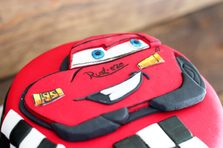 Y como no, su protagonista Rayo Mcqueen coronando la tarta, hecho de manera que si el pequeño quiere pueda quitarla de la tarta para quedársela de recuerdo.