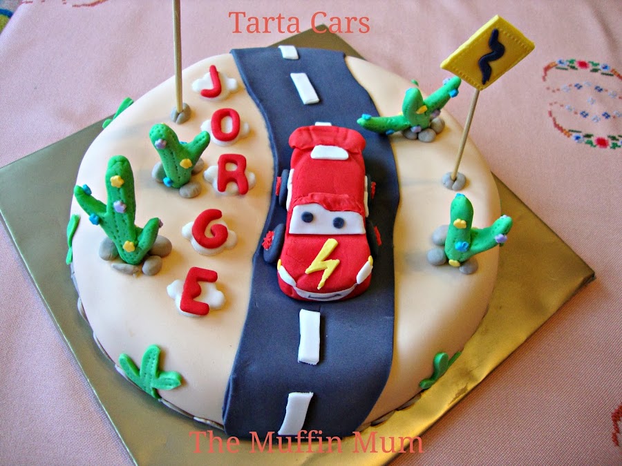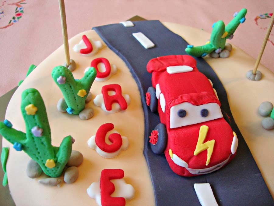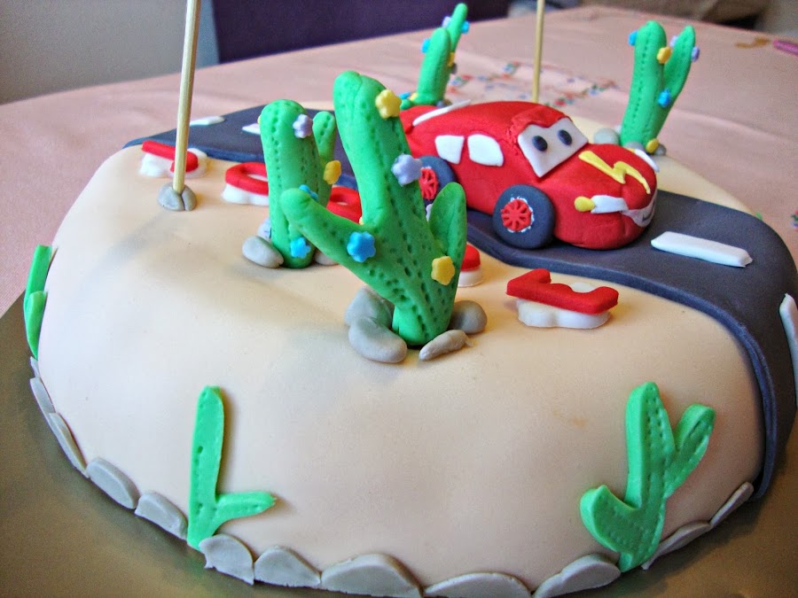 La tarta era para un alérgico a la proteína de la leche de forma que el bizcocho es sin lácteos y va relleno de mermelada de fresa y cubierto con lo que yo he llamado margarinacream de fresa y los detalles de fondant sin trazas de leche.