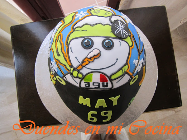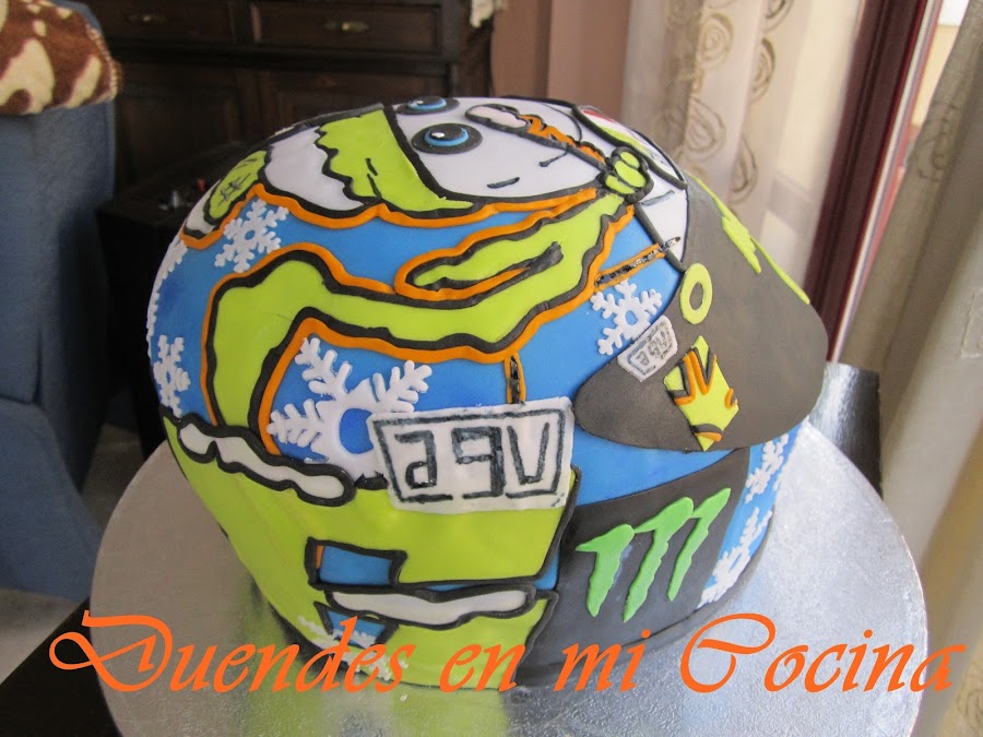 Me llamó esta semana una chica que quería hacerle un regalo a su padre, por su cumpleaños, de una tarta que significara algo que le apasiona; las motos y concretamente Valentino Rossi, me dijo que Valentino había sacado nuevo casco para el 2016 y que le encantaría hacerle ése casco en formato "tarta" a su padre.