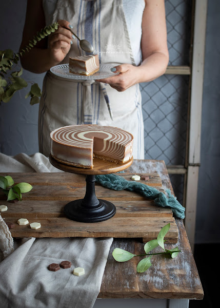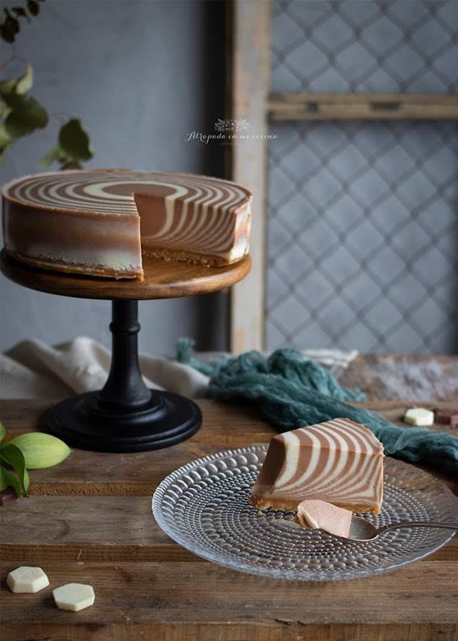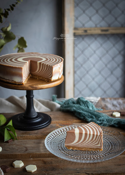 Si las tartas de queso gustan, aún más gustan si llevan chocolate, pero, y si además llevan una preciosa decoración en su interior y no necesitan horno, se pueden convertir en la tarta perfecta para este verano. Y esta no es para menos, con esta tarta os garantizo un éxito absoluto. La receta la vi en esta página y la tenía en pendientes desde hace tiempo. He preparado un vídeo que os dejo en mi canal de YouTube.