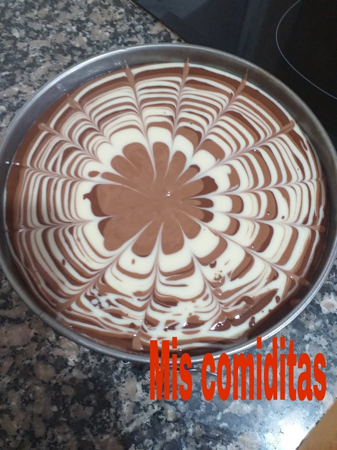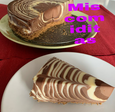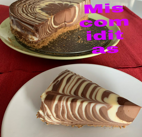 Pues hoy la receta que os traigo de Silvia es la tarta de tres chocolates que hemos hecho toda la vida pero en vez de con cuajada, con queso crema, y en vez de a capas, pues..modo cebra.